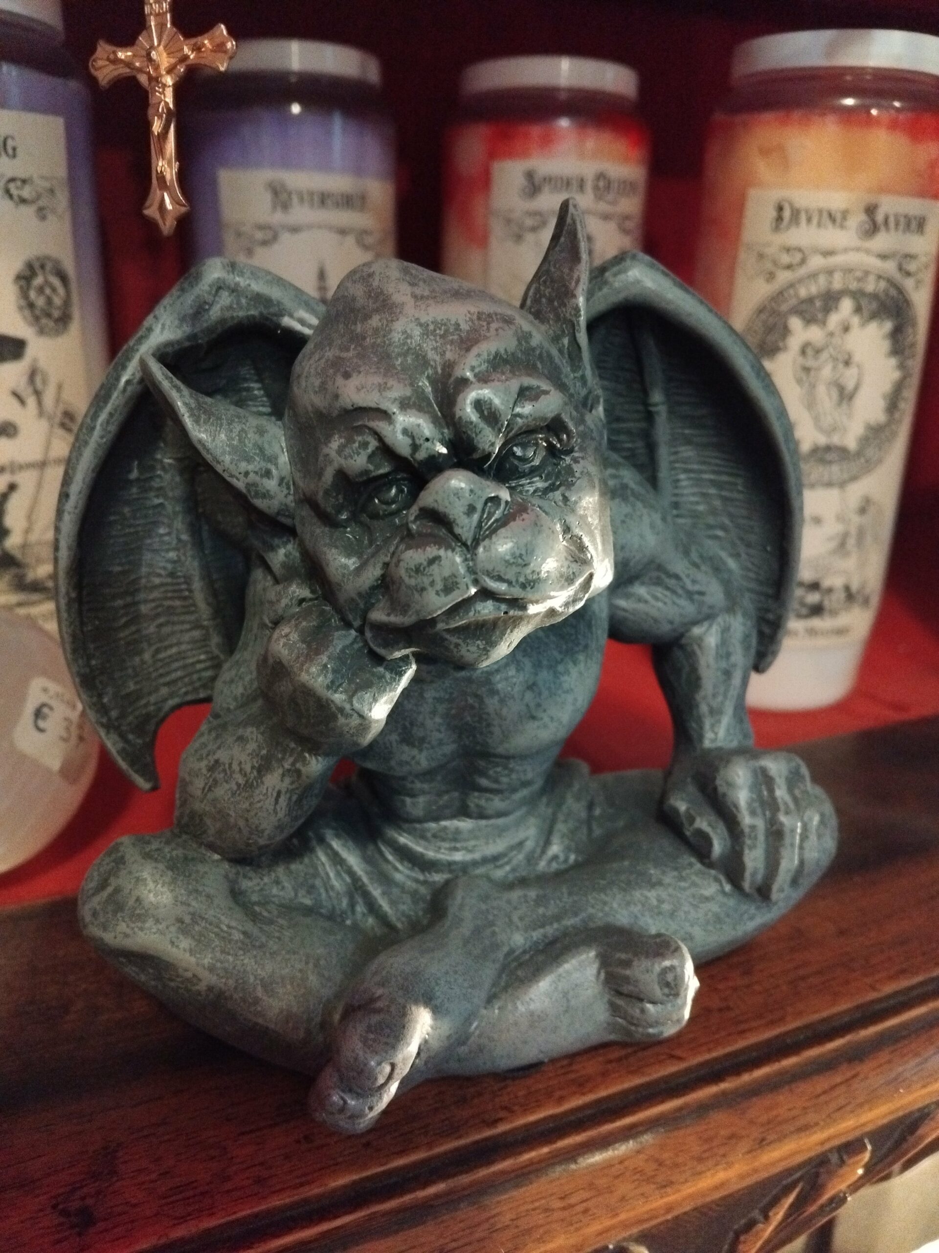 Figurine de gargouille gris noire