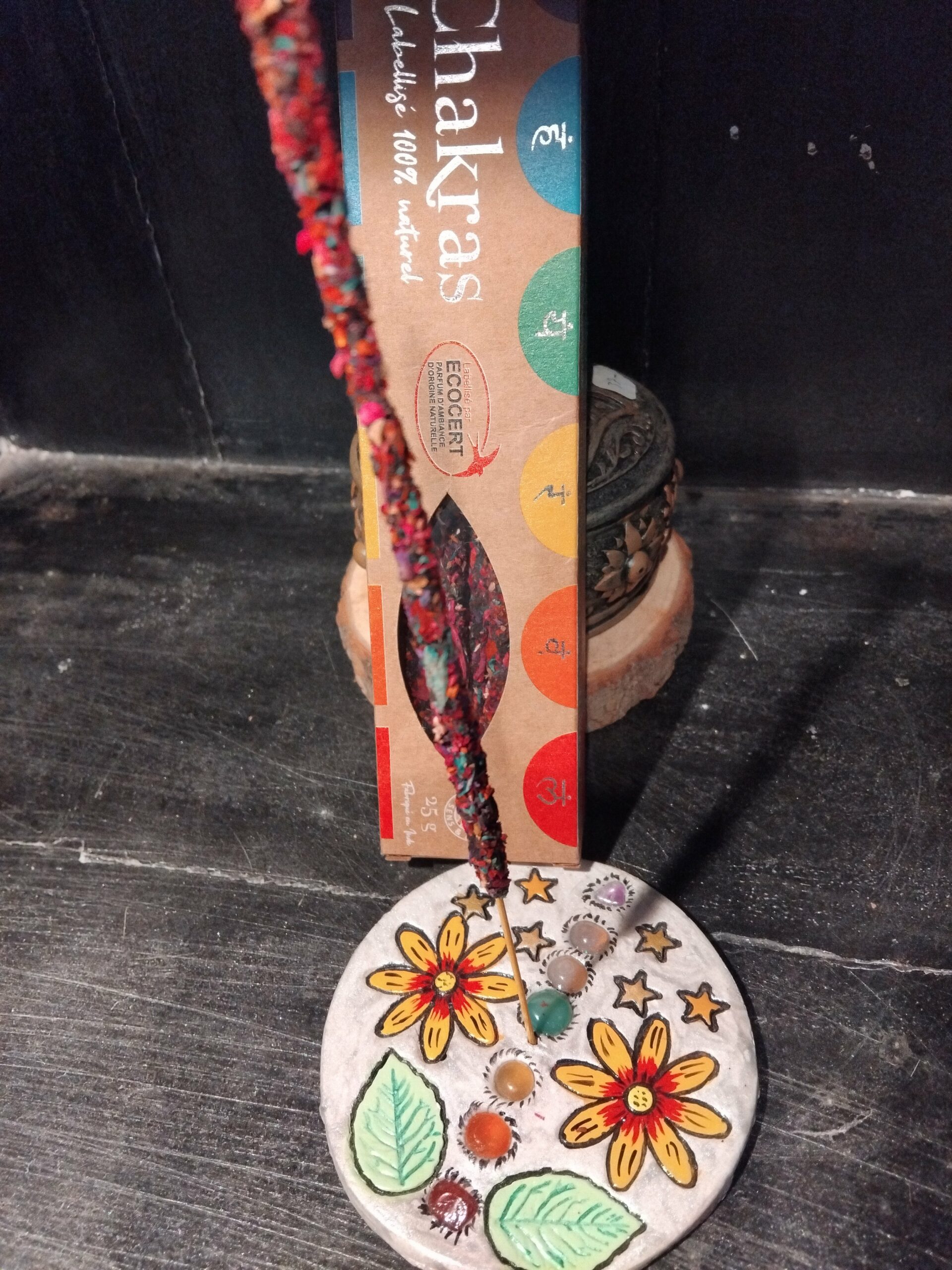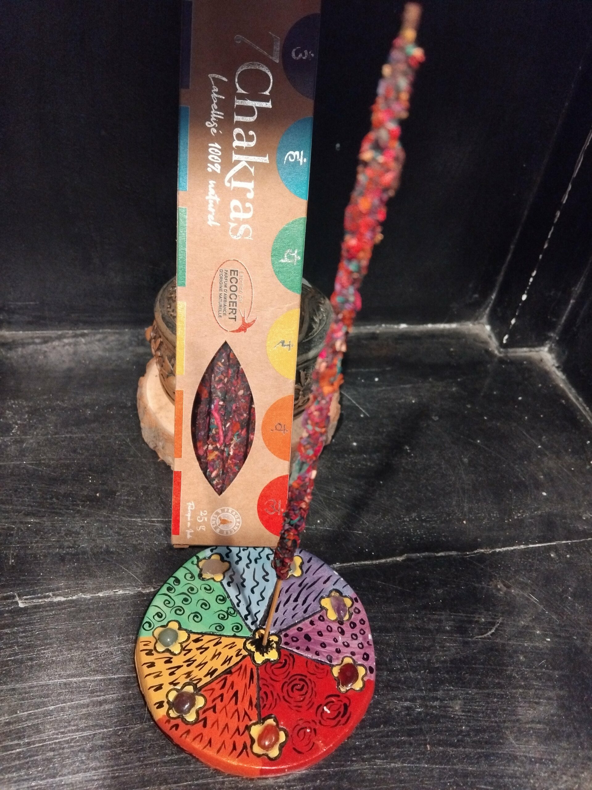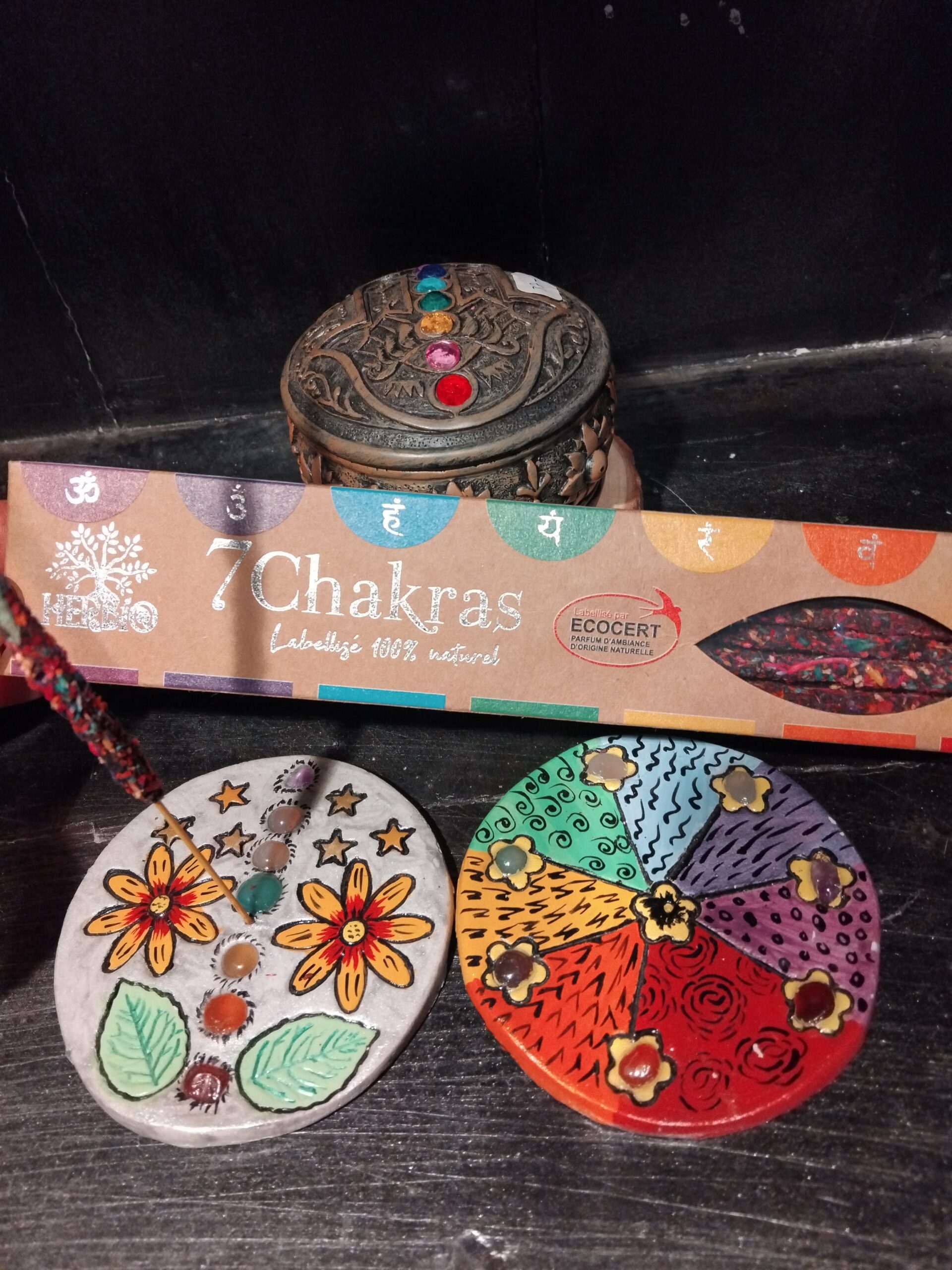 lot porte encens fait mains au choix plus encens herbio 100% naturel 7 chakras